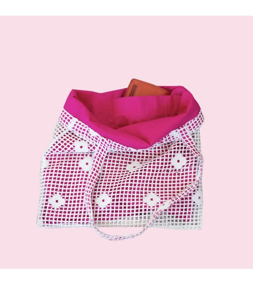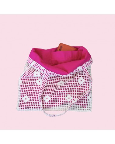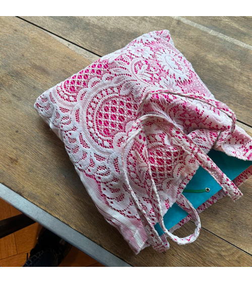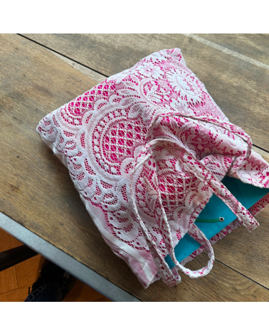 Avec ses dimensions 35 x 35 cm et ses anses de 60 cm, il est idéal pour transporter vos affaires au quotidien. Sa couleur rose vive illumine vos tenues tout en révélant la surprise délicate de la dentelle.