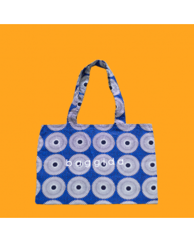 Son motif floral délicat sur fond bleu inspiré de la mer togolaise, apporte une touche poétique et lumineuse. Ce totebag combine praticité, robustesse et style, et reflète parfaitement la beauté et la sérénité de la nature.